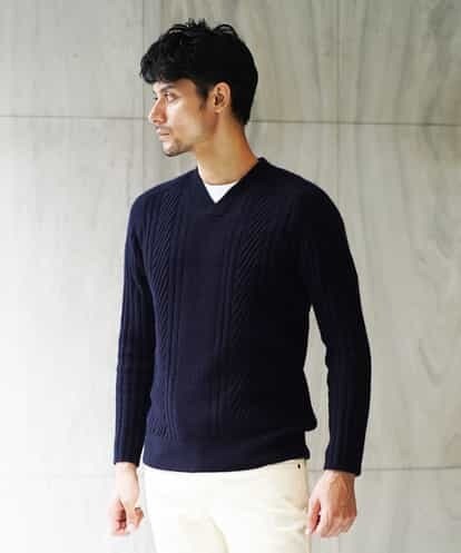 Vネックニット(ハイランドラクーン) ネイビー 48