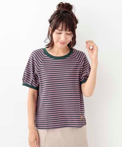 テレコ素材を使用したボーダーTシャツ。横方向への伸縮性があり、着心地の良いアイテムです。ふんわりと柔らかく、もちっとする肌触りが特徴で、1枚で着用しやすいカットソーです。袖部分はふんわりとしたシルエットにし、気になる部分も隠せるデザイン♪裾の部分には、木のワッペンをワンポイントとして付けているので、デニムや無地ボトムとの相性も抜群です。