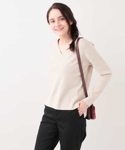【洗える】Vネックニットプルオーバー ベージュ 40