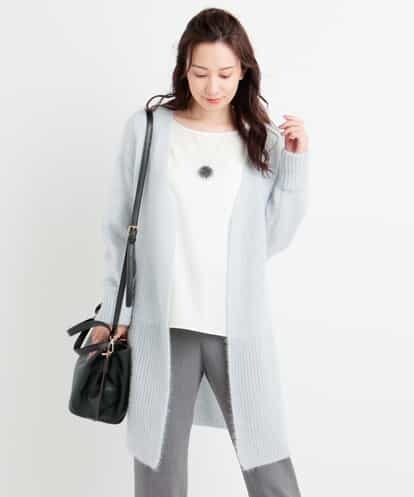 【洗える】ヘアリーニットロングカーディガン ライトグレー 38
