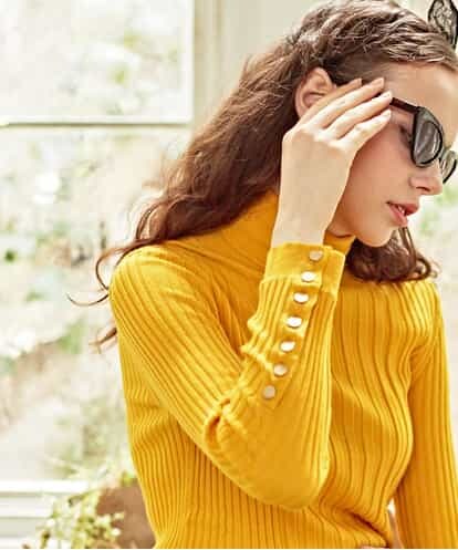 リブタイトタートルネックニット マスタード 38