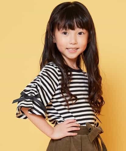 [100-130]袖リボンボーダーカットソー[WEB限定サイズ] ブラック 110