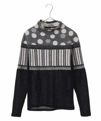 ボーダー状になったドットをミックスしたデコルテゾーンや、ランダムなストライプなど、表情豊かな編地を組み合わせたこだわりのショートトップスです。程良く高さを付けたネックは、さりげなくフェミニン感を引き立ててくれます。同じシリーズの【RBKAI37260】もお薦めですmodel:H170 B80 W59 H85 着用サイズ:M