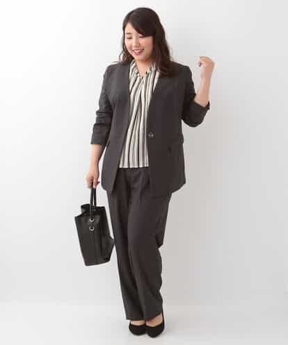 【大きいサイズ】ノーカラーデザインジャケット ダークグレー 15