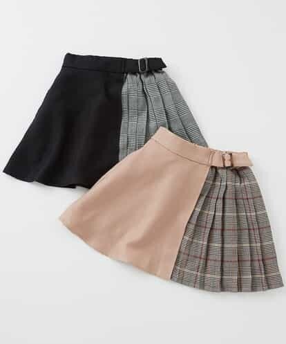 [100-130]チェック切替台形スカート[WEB限定サイズ] ベージュ 130