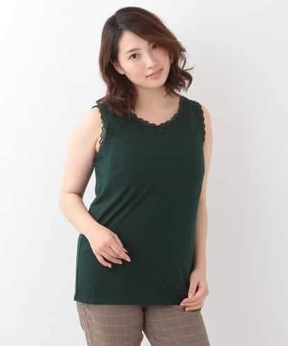肌触りの良いジャージー素材が着心地の良いタンクトップです。ネックとアームホールをレースで華やかに彩ったデザインが、スタイリングのアクセントにも最適です。インナーでポイント使いしたり、着回し力抜群のアイテムは色違いで揃えるのもオススメです。