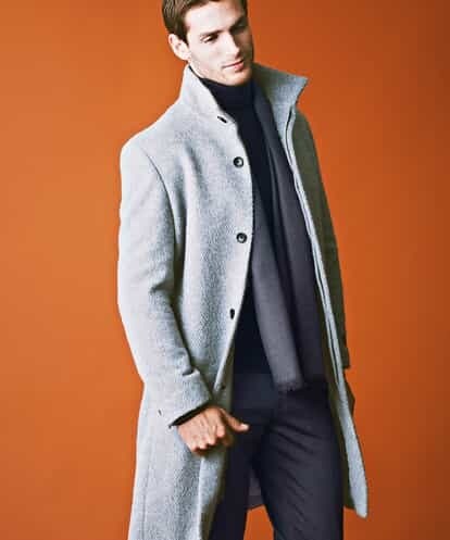 世界に誇る日本の多様織物“尾州”Collection の素材です。 『アンゴラドビービーバー』という、今や貴重なTOP糸のアンゴラヤギの獣毛混を使用した梳紡毛織物です。 表面にアンゴラ50%の糸がくるような織り組織で、混率以上に風合いが良く、軽量で暖かいのが特徴です。 「尾州織物」は世界的に有名なイタリアのビエラやプラ?トとも比べられるほど、 高いクオリティを誇ります。 尾州産地で培われた技術的優位性と意匠性が認められ、承認された尾州産地生地のみに 「BISHUJAPAN」のネームとラベルを付けることが許されます。 ビジネスからオフまで大活躍の1着。 【こだわりポイント】 ※見える釦は、袖口の本開き一つ釦のみのシンプルデザインで、オンオフでの対応を可能に。 *ゆったりとした胸のふくらみの重厚感を作りだす「縦方向立体パターン」 *背中に吸い付くバックラインを創り出す「Sカーブシェイプライン」 *肩全体を立体的に包み込む「ショルダーライン」 *前ボタンを外した時にも美しく流れ纏わりつかない「Aラインシルエット」 *ポケットの内側には、外気温から寒さを抑える起毛裏地を使用。 *外からの赤外線を熱へ返還する機能と、人体からの遠赤外線を取り込む 機能で、衣服内温度の上昇を促進する防寒機能裏地「フィールサーモ」を使用 汎用性の高い、着回しに非常に便利なコートです。 数量限定となります。