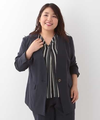 【大きいサイズ】ノーカラーデザインジャケット ネイビー 17