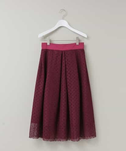 小さなフラワーモチーフのレースで仕立てた、上品な透け感が魅力のスカートです。深くタックを取ったフェミニンに広がるフレアシルエットが、動きのある美しい表情を魅せてくれる一着です。インナースカートとのレングスに差を付けることで、レースの透け感をぐっと引き立てるデザインになっています。ウエストベルトはエレガントなグログランリボンで仕上げ、バックにはメタルファスナーをあしらいアクセントをプラスしました。※バックファスナー、裏地付き