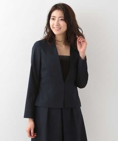 すっきりとノーカラーで仕立てたモードな雰囲気を演出してくれるジャケット。縦と横の切り替えを活かしたデザインが洗練されたモダンな一着に仕上がっています。オケージョンシーンにもしっかりとマッチする上質なジャケットはセットアップコーディネイトもオススメ。同じテキスタイルで仕立てた【EJHDD10099】、【EJJDD11159】、【EJLDD10119】のご用意がございます。ご自宅で手洗いして頂けるのも嬉しいポイントです。※裏地付きmodel:H170 B82 W58 H85 着用サイズ:M