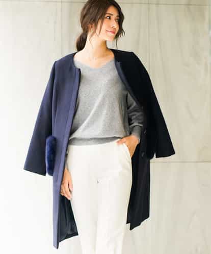 ノーカラーファーポケットコート[WEB限定サイズ] ネイビー 36
