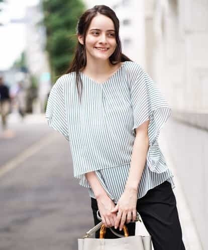 ■OFUON大人気アイテム!■ トラッド感のあるストライププリントが甘さを抑え、大人レディな着こなしに。 二枚重ねになったシフォンのレイヤードカットが前後で形を変え、 サイドのスナップを留めるとフレアスリーブとなって、 広がるシルエットを抑える事も可能。フレアを肩にかければノースリーブにも! 嬉しい3WAYデザインのフェミニンさたっぷりな一枚です。 ビジネスシーンから普段のお出かけにもマルチに活躍します。 model:H165 B79 W60 H88 着用サイズ:M