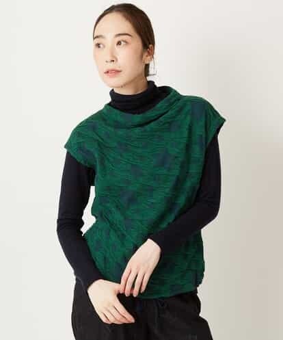 コットンやウール、レーヨンをミックスして編み立てた、立体的な表情が目を惹くテキスタイルで仕立てたプルオーバー。二重に編んで表現した、様々なサイズのスターモチーフが、スタイリングを華やかに演出してくれる一着です。袖のないすっきりとしたデザインに、ゆったりと抜け感のあるネックがフェミニンなポイントに。裾に入った紐でシェイプをアレンジしてお楽しみ頂けます。model:H167 B80 W59 H84 着用サイズ:M