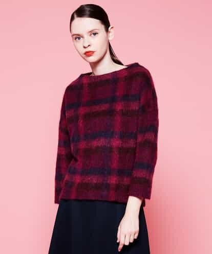 色のグラデーションがきれいなチェック柄のシャギープルオーバー。タテ糸とヨコ糸を4色ずつ使いチェックに編み上げ、毛足感のあるシャギージャージが完成しました。オーバーシルエットのデザインで1枚で着ても様になるデザイン。ボトムもワイドパンツなタイトスカートなどスタイリングも組んでいただきやすいです。また同素材のシャギースカート【GBHBG62430】との合わせも組んでいただけます。 model:H170 B80 W58 H81 着用サイズ:M