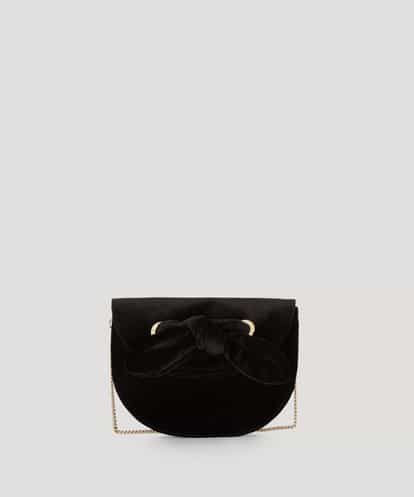 ベロア調のエレガントな表情に、大きなリボンが目を惹くショルダーバッグ。シックな色合いにメタルチェーンが輝く美しいバランスのバッグです。蛇腹になった収納はお財布やスマートフォンが入る手頃なサイズ感になっています。パーティシーンからドレッシーなコーディネイトのアクセントにも最適のアイテムです。