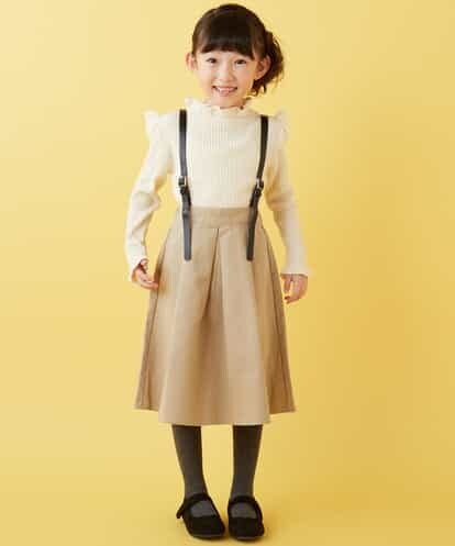 [100-130]合皮サスペンダー付きミディ丈スカート[WEB限定サイズ] ベージュ 130